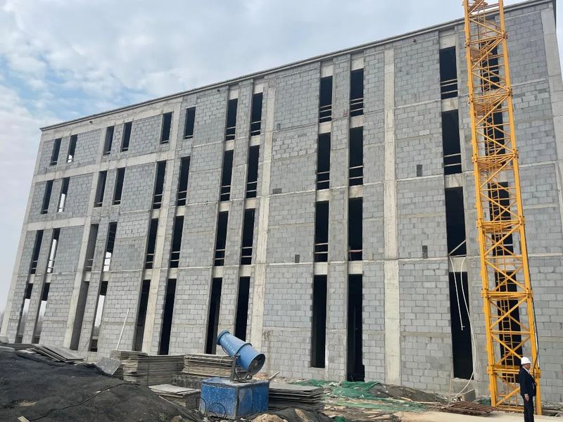 F#楼正在进行外墙抹灰及屋面砖铺设